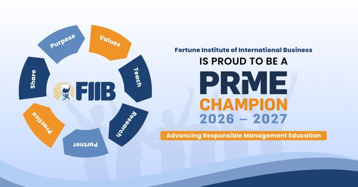 Recognition matters! Not as a badge, but as validation of a direction pursued with intent and consistency. Fortune Institute of International Business (FIIB), New Delhi, has been named a PRME Champion for 2026–27, placing it within an exclusive global cohort of 50 business schools and universities committed to advancing responsible management education aligned with the United Nations Sustainable Development Goals (SDGs).